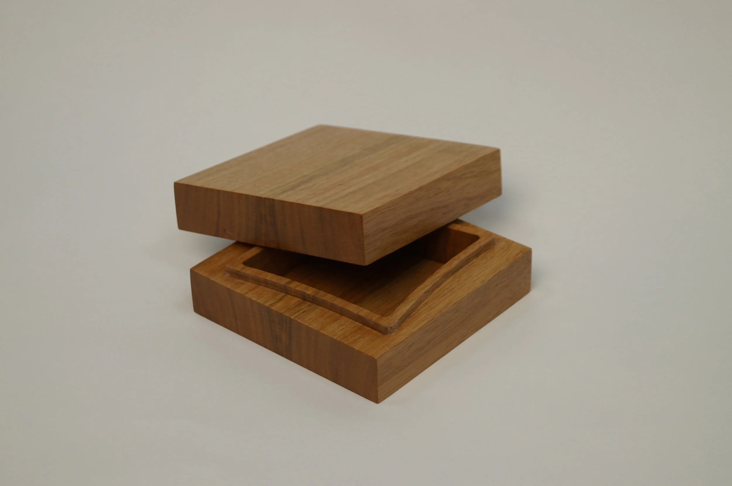 Thermal modification, experiments to determine the suitability of Tasmanian timbers to be processed. This prototype was made to test the various methods to determine the most suitable to take into production scale. These tests proved that Tasmanian and plantation species were capable of being processed.